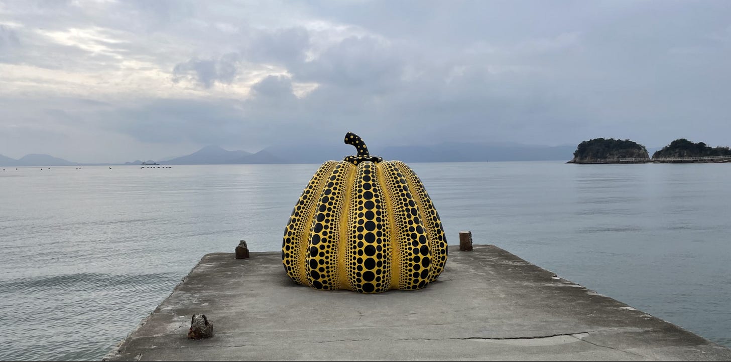 Most of the Naoshima museums are bare concrete works by Tadeo Ando, not the more classical glass style I associate with his work in places like Fort Worth.