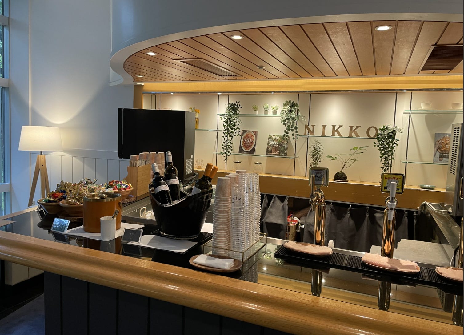 Notice the vending machines on the left. AFAIK, Japan has by far the world’s best vending machines. (I’ve never been to Korea.) Society doesn’t panic at the thought that a young person might be able to secretly obtain some tobacco or alcohol from vending machines. (In America, you need an ID to buy O’Douls.) In our hotel in Nikko, there was a self-serve bar with no attendant watching over you, which had beer, wine, coffee, various nuts and soft serve ice cream: