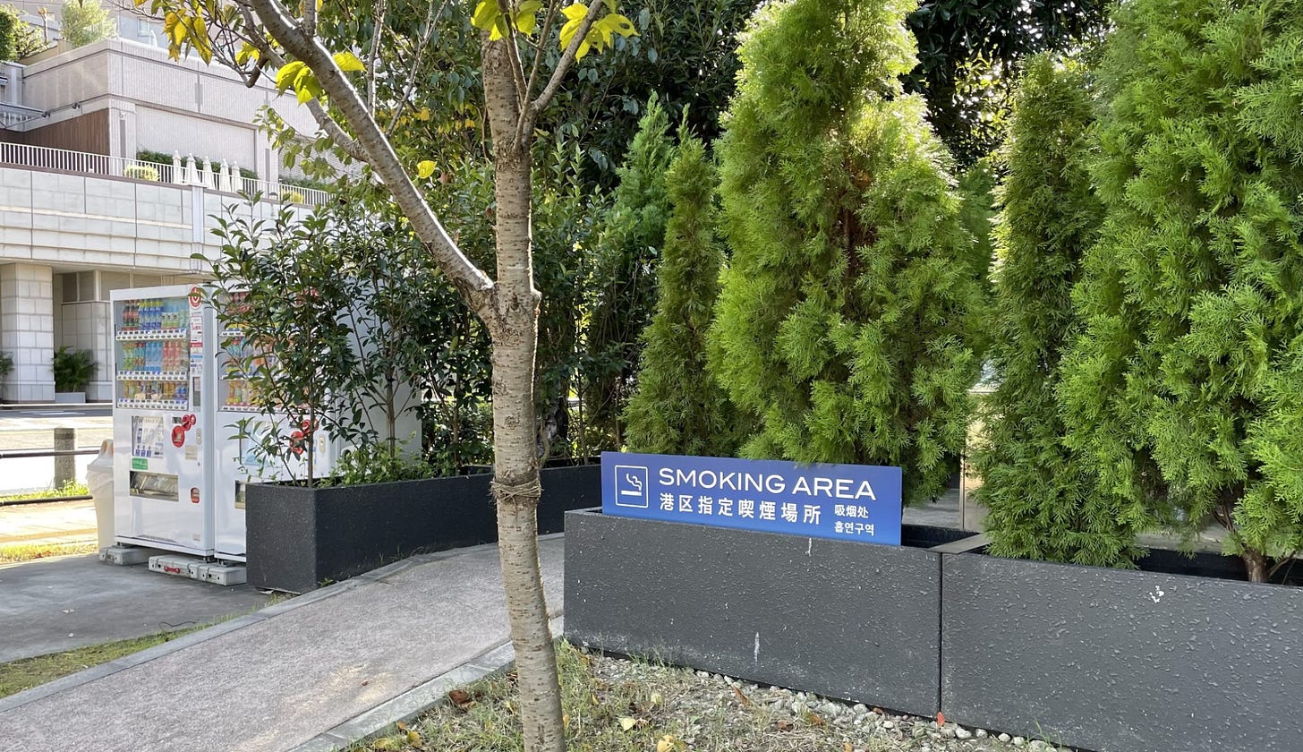 The Japanese seem to put a great deal of thought into making life more convenient. Smokers are not treated like lepers: