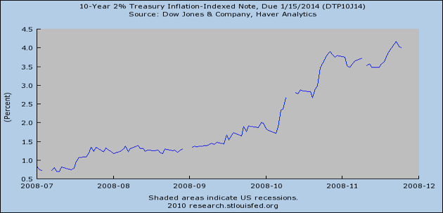 But let’s say I’m wrong, and that real rates are the correct indicator of the stance of policy. Then why weren’t economists freaking out during the fall of 2008, when real rates on risk free government bonds rose sharply higher? Indeed, why did almost everyone ignore that indicator?